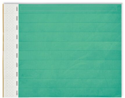 One sheet of 10 event wristbands. DuPont ™ Tyvek® 19mm wide. Including unique numbering on each wristband.