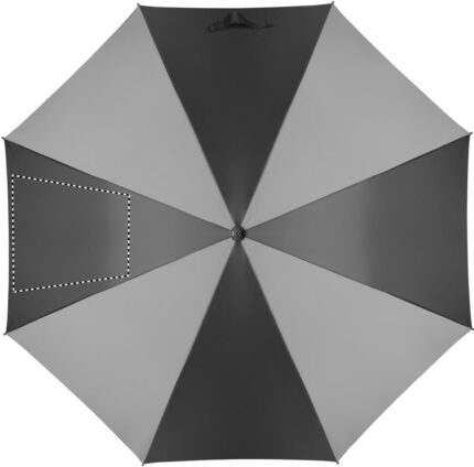 30 inch manual open windproof umbrella in 190T pongee (4 panels) and reflective material (4 panels) with fiberglass frame, ribs and shaft. Straight ABS handle with rubber finish. Manual closure.
