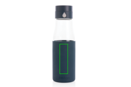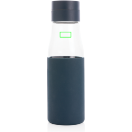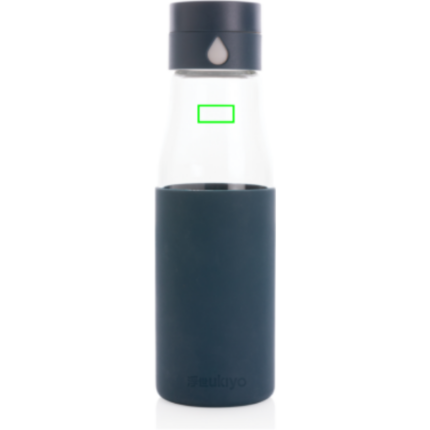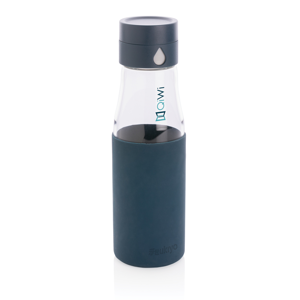 Ukiyo glass hydration tracking bottle with sleeve