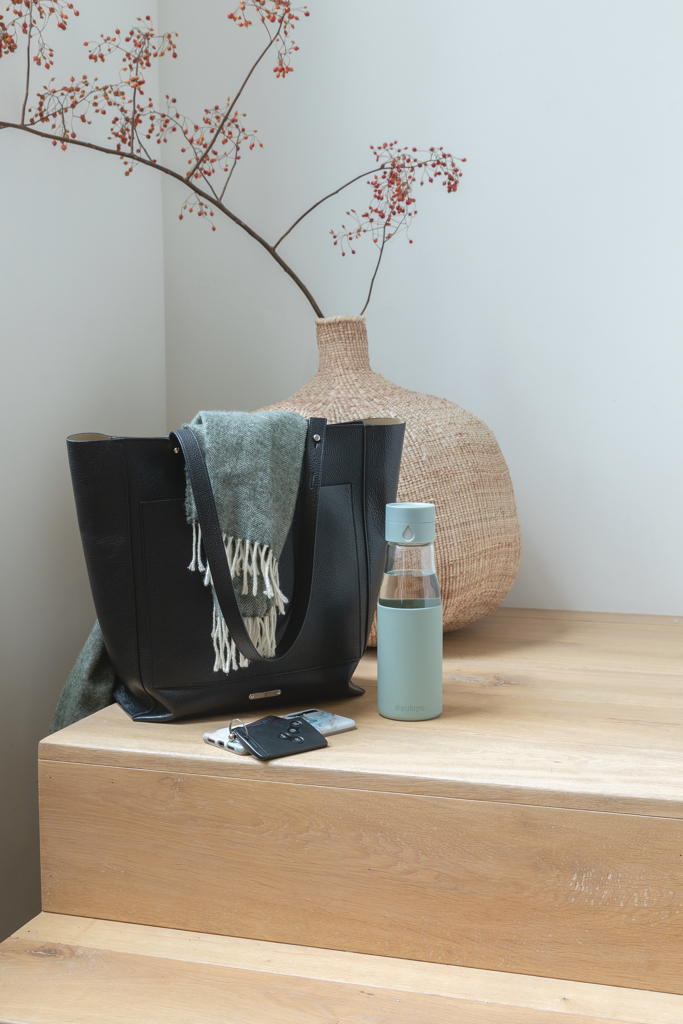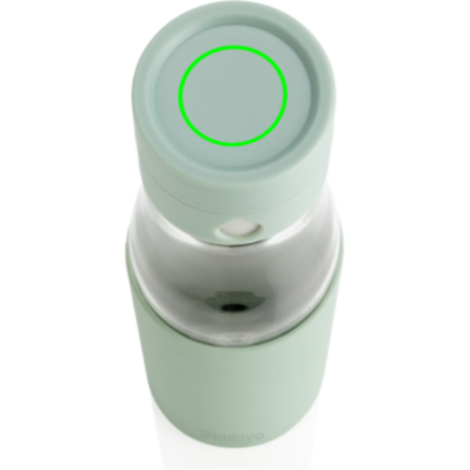 Track your daily hydration goals with this cleverly designed Ukiyo borosilicate glass 600ml water bottle. The lid displays a bigger water drop each time you refill and twist the collar so you can easily keep count of the number of bottles you drink. The body is dishwasher safe. Leakproof. Registered design®