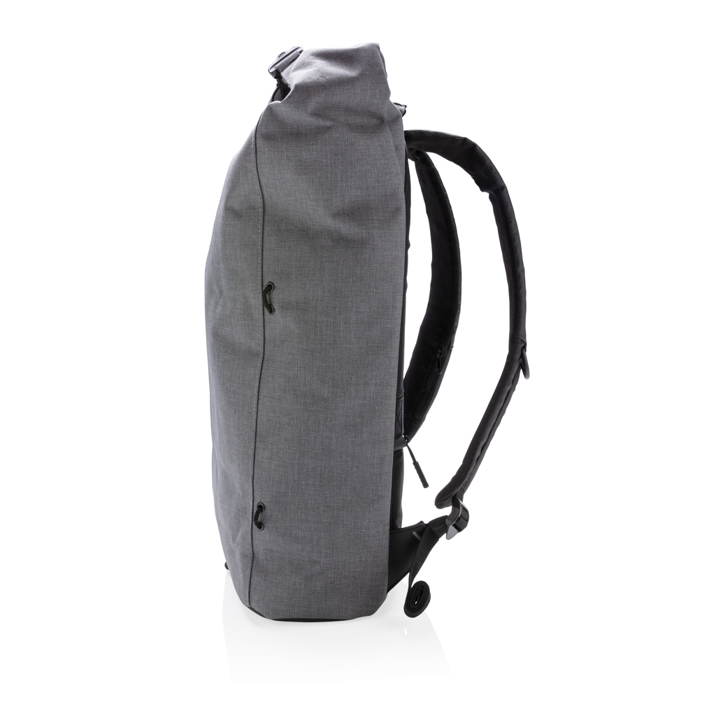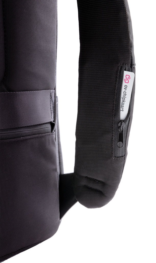 The Urban Lite anti-theft backpack is the perfect travel companion. The backpack can be completely closed by rolling up the main compartment and locking it with the steel reinforced combination lock. This function can also be used to lock the bag around a fixed object. There are hidden pockets on the back and in the shoulder strap for cards, with RFID protection. The bag comes with a side water bottle pocket and detachable elastic net for your sports equipment. While on the inside there are padded compartments for a 15.6” laptop, tablet up to 12.9” and mesh pockets for your other belongings.  Registered design®
