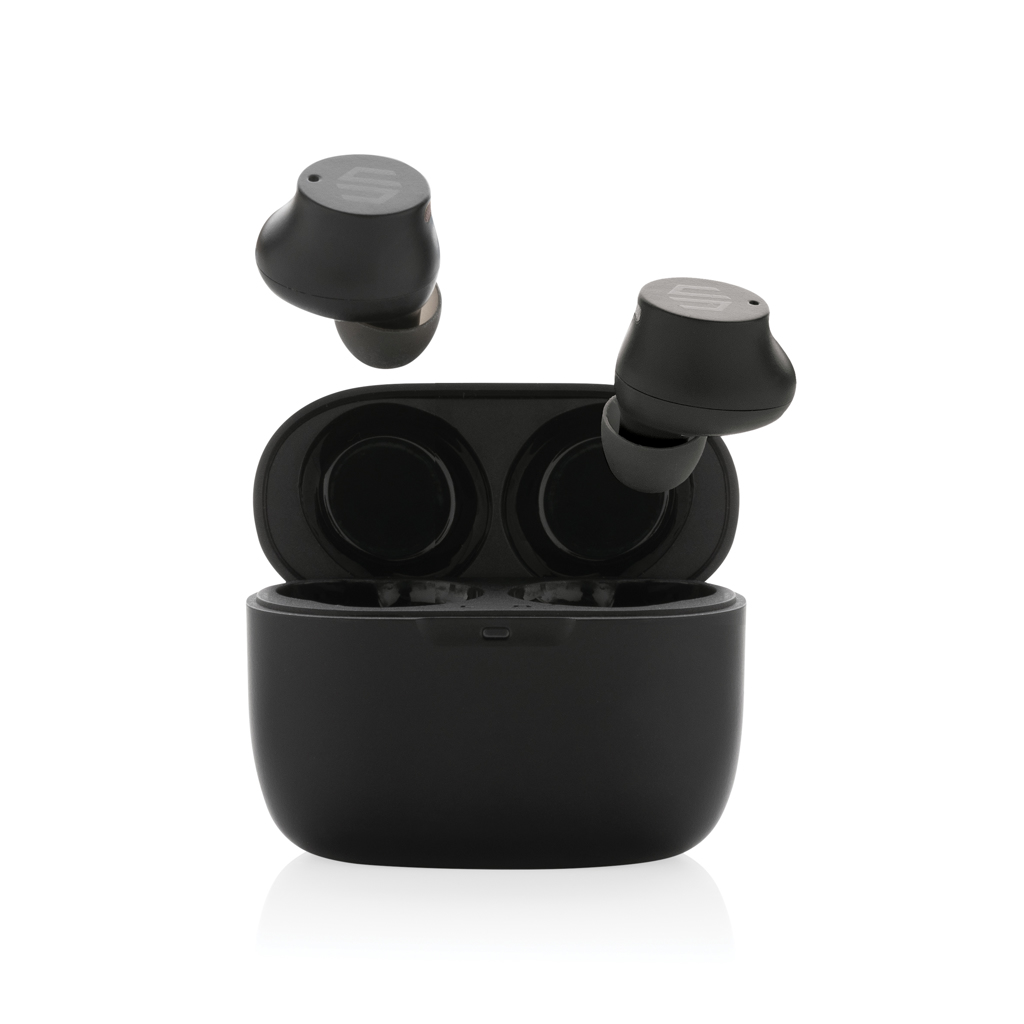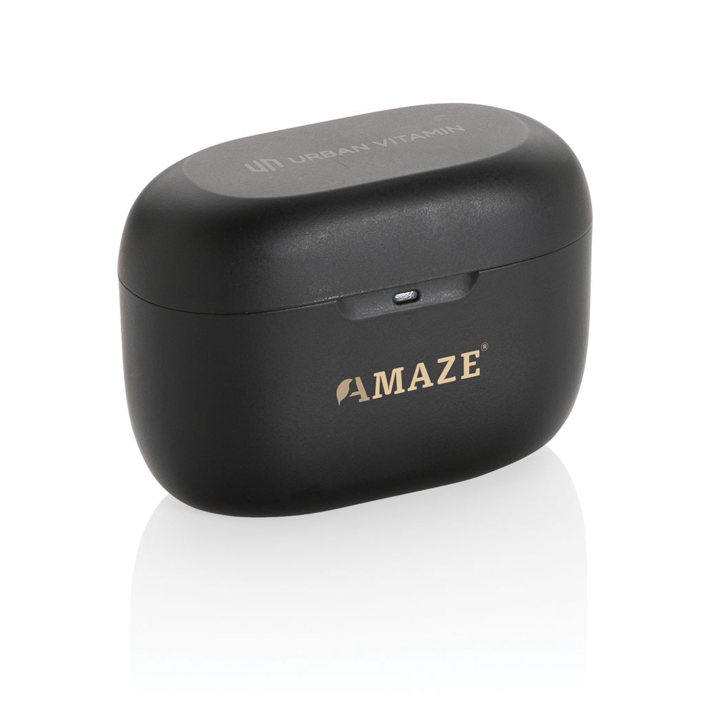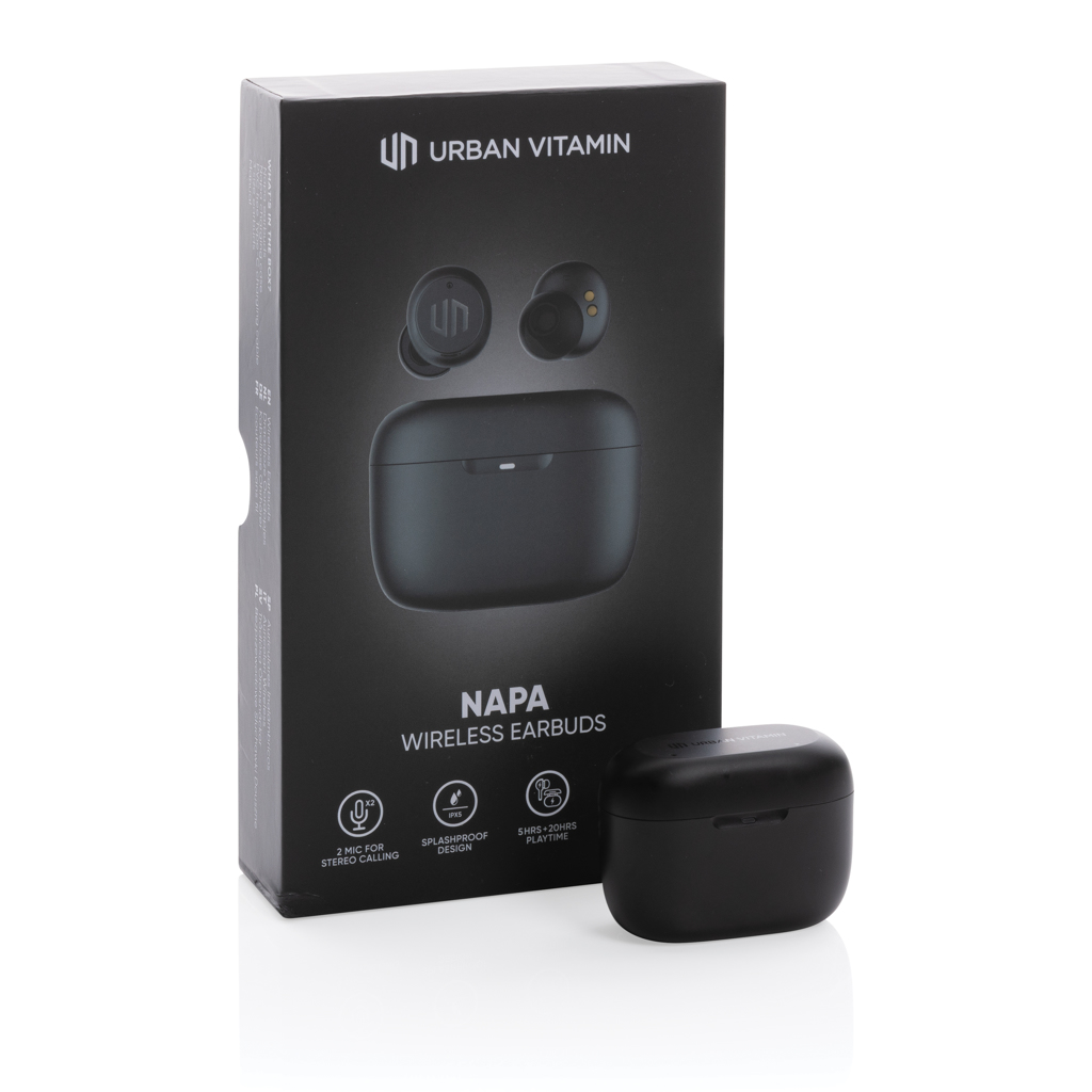 When you open the case and put in the earbuds, the intense bass hits you. How can an item so compact and portable deliver such rich and deep sound? The earbuds and portable charging case are designed to be able to carry no matter where you go and fit easily into your pocket. The comfortable earbuds have up to 5 hours of listening time and the charging case allows up to 20 hours of playback. Enough to keep you going all day! When receiving a call simply answer it in stereo sound thanks to the 2 integrated microphones. With the integrated touch control function you only have to tap the earbud to answer in crystal clear quality. The IPX 5 rating makes the earbuds weather, sweat and splash proof so no worries to take them outside. Urban Vitamin items are made without PVC and packed in plastic reduced packaging.