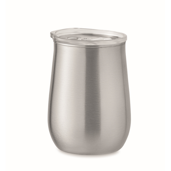 Recycled stainless steel (90% recycled stainless and 10% stainless steel) powder coated mug with lid with sliding sip hole cover. Capacity: 500 ml.