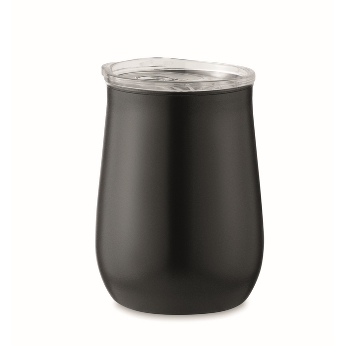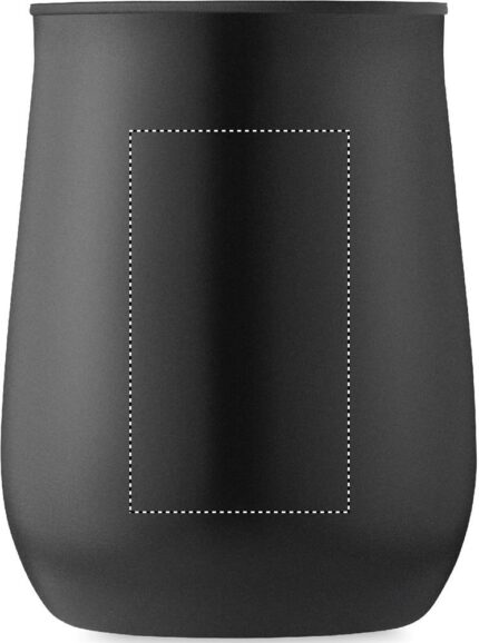 Recycled stainless steel (90% recycled stainless and 10% stainless steel) powder coated mug with lid with sliding sip hole cover. Capacity: 500 ml.
