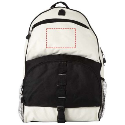 Backpack with padded shoulder straps, 2 mesh side pockets, detachable phone pouch, zipper front pocket for MP3/MP4 player and several small hooks for keys and an ear bud opening.