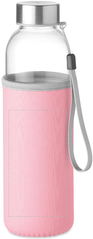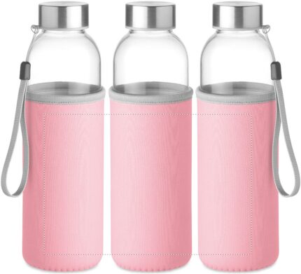 Glass bottle with neoprene pouch in 500 ml. Not suitable for carbonated drinks. Leak free.