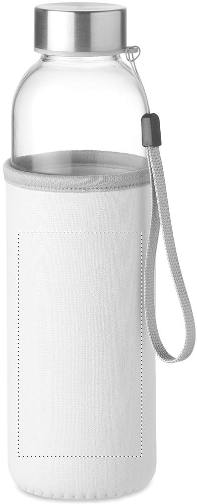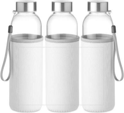 Glass bottle with neoprene pouch in 500 ml. Not suitable for carbonated drinks. Leak free.