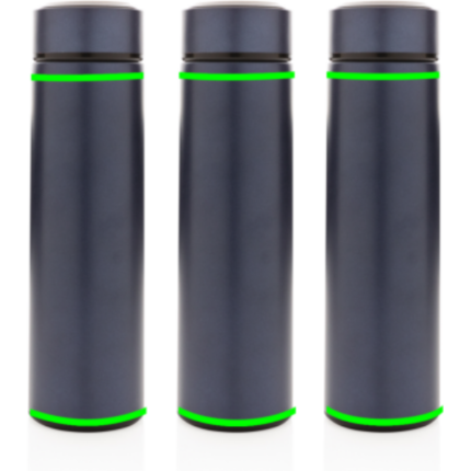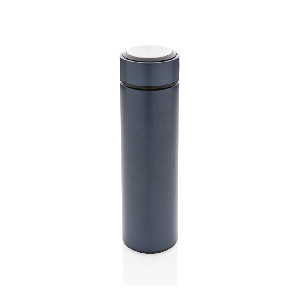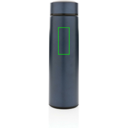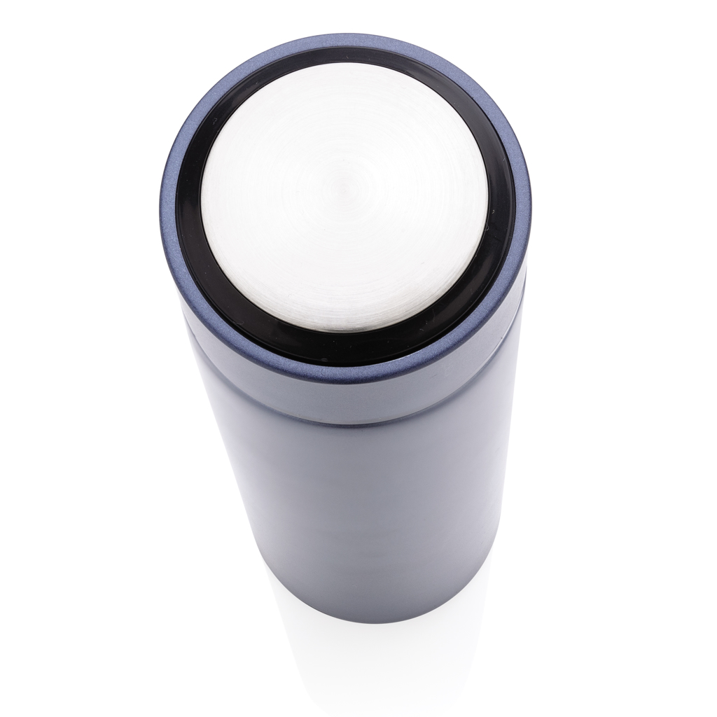 Keep coffee or tea nice and toasty in this vacuum stainless bottle with brushed metal lid. The bottle features a leak-proof screw lid and allows for drinking from any side. The wide mouth opening allows for easy cleaning. Capacity 450ml. BPA free.