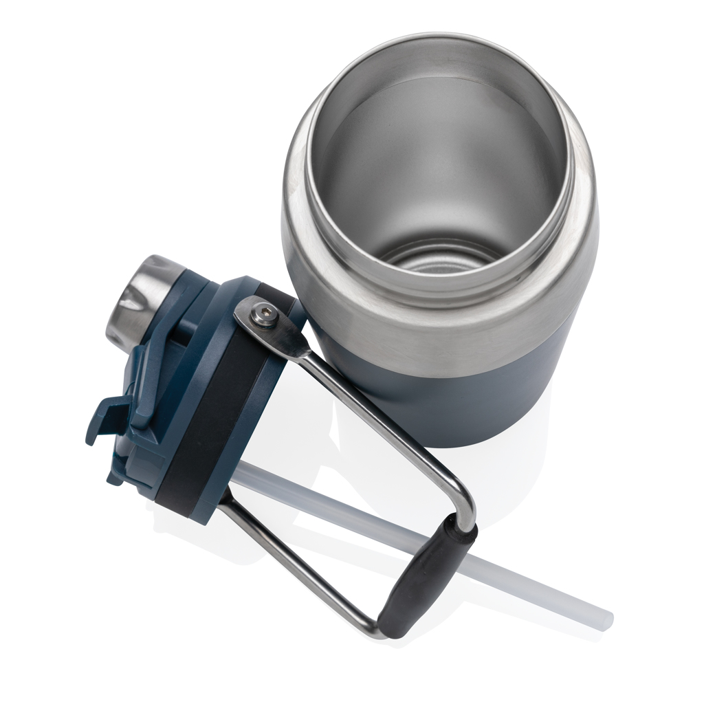 The ultimate stainless steel bottle for on-the-go versatility. The lid has a dual function that has both a flip top straw and screw cap so you can choose how you want to drink from the bottle! The bottles features a top handle for easy carrying. Double wall vacuum insulated stainless steel keeps beverages hot for up to 5 hours or cold for up to 15 hours. A powder coat finish creates a highly durable exterior. Capacity 500ml. BPA free.