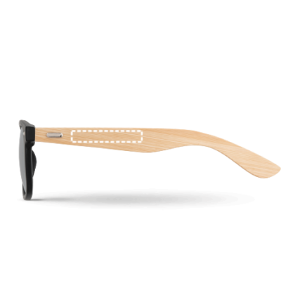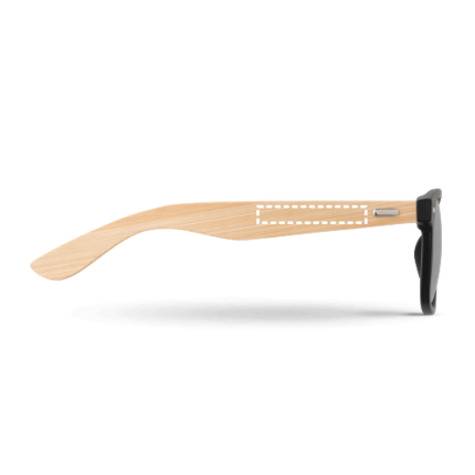 Sunglasses with PP and bamboo frames. Category 3 mirrored lenses and UV400 protection. Complying with EN ISO 12312-1. 146 x 49 x 150 mm