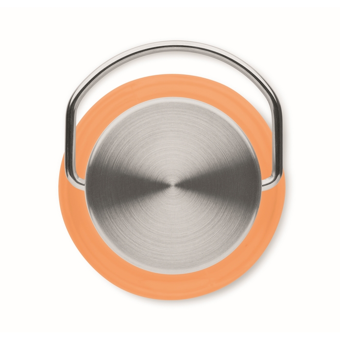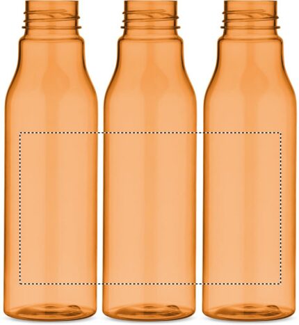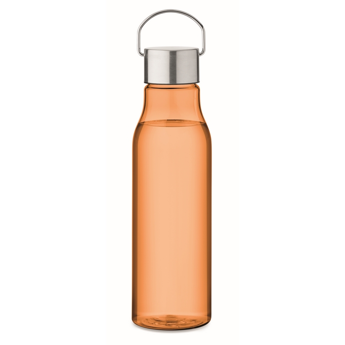 Drinking bottle in RPET which is BPA free and stainless steel cap with lid handle. Leak free. Capacity: 600 ml.