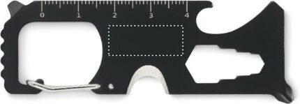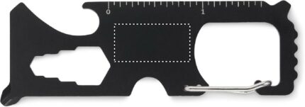 Stainless steel multi-tool pocket card tool. 8 functions. It includes: tooth saw, wire cutter, spanner, Phillips screwdriver, slotted screwdriver, measuring scale, bottle opener and key chain.
