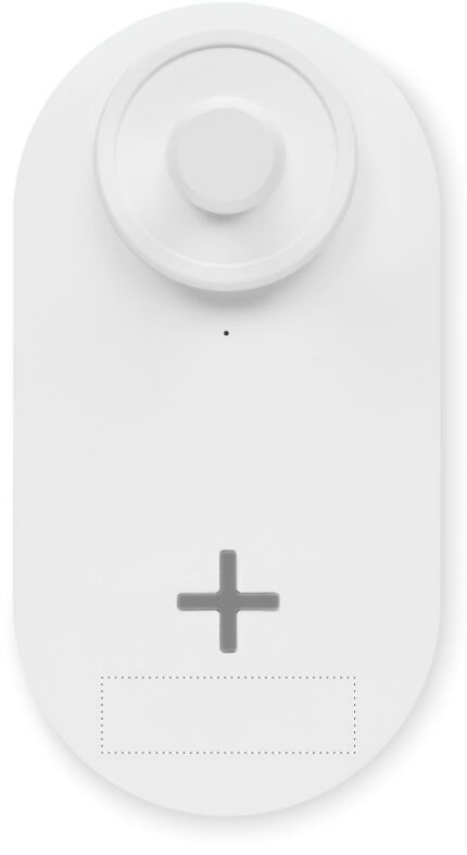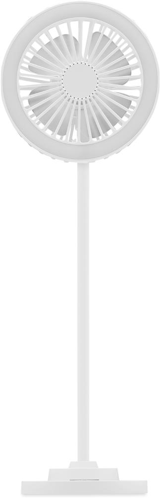ABS Desktop fan with 3 speed settings with LED light (80 lumens) and 10W wireless charger. Output: DC 9V/1.1A (10W) for quick charging. Compatible with latest Androids, iPhone® 8 and newer.
