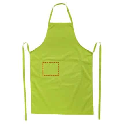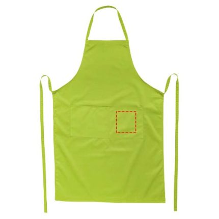 Whether equipped with or without a logo, protecting beautiful clothes while cooking is easy with the Viera apron. The apron consists of 240 g/m² twill (65% polyester and 35% cotton), which makes the apron thick and sturdy, while still soft and comfortable to wear. The two front pockets offer a quick way to store kitchen essentials, and the 1-metre-long bow tie makes this apron a one-size-fits-all. Besides this, the Viera apron offers multiple options for adding any logo.