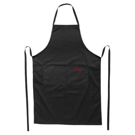 Whether equipped with or without a logo, protecting beautiful clothes while cooking is easy with the Viera apron. The apron consists of 240 g/m² twill (65% polyester and 35% cotton), which makes the apron thick and sturdy, while still soft and comfortable to wear. The two front pockets offer a quick way to store kitchen essentials, and the 1-metre-long bow tie makes this apron a one-size-fits-all. Besides this, the Viera apron offers multiple options for adding any logo.