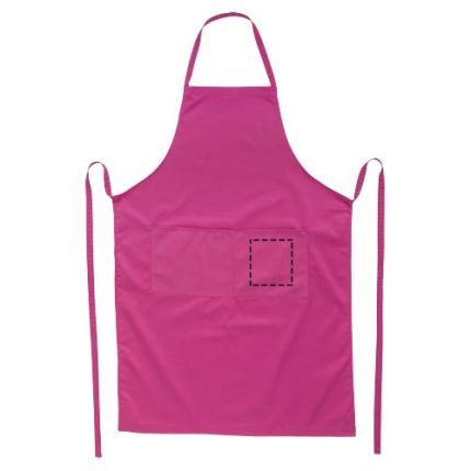 Whether equipped with or without a logo, protecting beautiful clothes while cooking is easy with the Viera apron. The apron consists of 240 g/m² twill (65% polyester and 35% cotton), which makes the apron thick and sturdy, while still soft and comfortable to wear. The two front pockets offer a quick way to store kitchen essentials, and the 1-metre-long bow tie makes this apron a one-size-fits-all. Besides this, the Viera apron offers multiple options for adding any logo.
