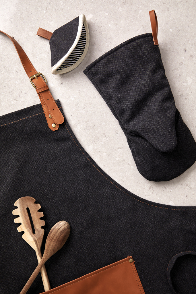 Practical and stylish oven glove made of cotton canvas. Generously padded to protect your hands when you’re taking hot dishes from the kitchen to the table. You can hang the stylish oven glove up in your kitchen with the handy leather loop when not in use – ready to grab when you about to take out a searing hot dish! Suitable for right and left handed users.