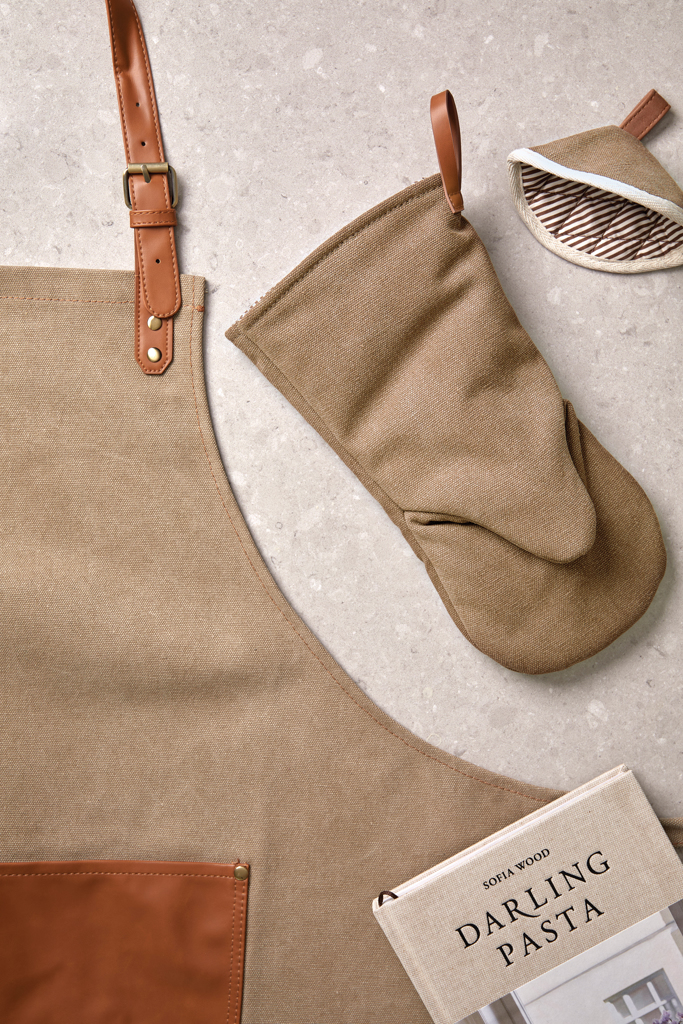 Practical and stylish oven glove made of cotton canvas. Generously padded to protect your hands when you’re taking hot dishes from the kitchen to the table. You can hang the stylish oven glove up in your kitchen with the handy leather loop when not in use – ready to grab when you about to take out a searing hot dish! Suitable for right and left handed users.