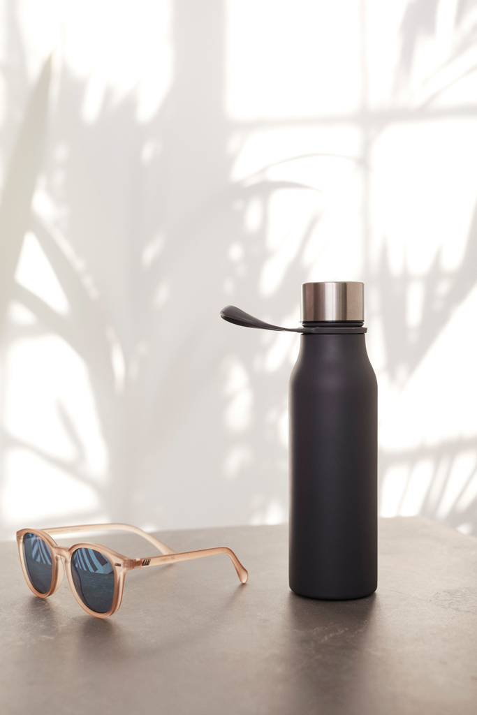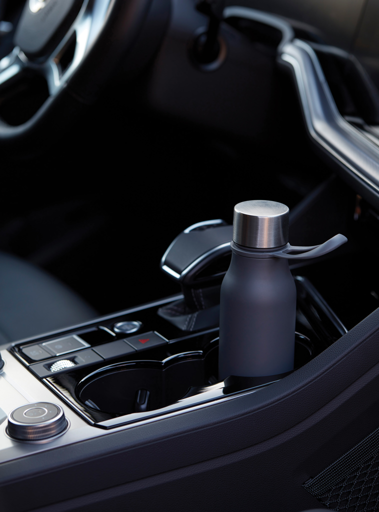 Stainless steel thermos that matches the water bottle coming from the same series. The eyelet on the lid is great for attaching the thermos to the bag and thanks to its shape, it fits most cup holders. Suitable for both hot and cold drinks, keeping the temperature intact for a long time. Easy to clean.