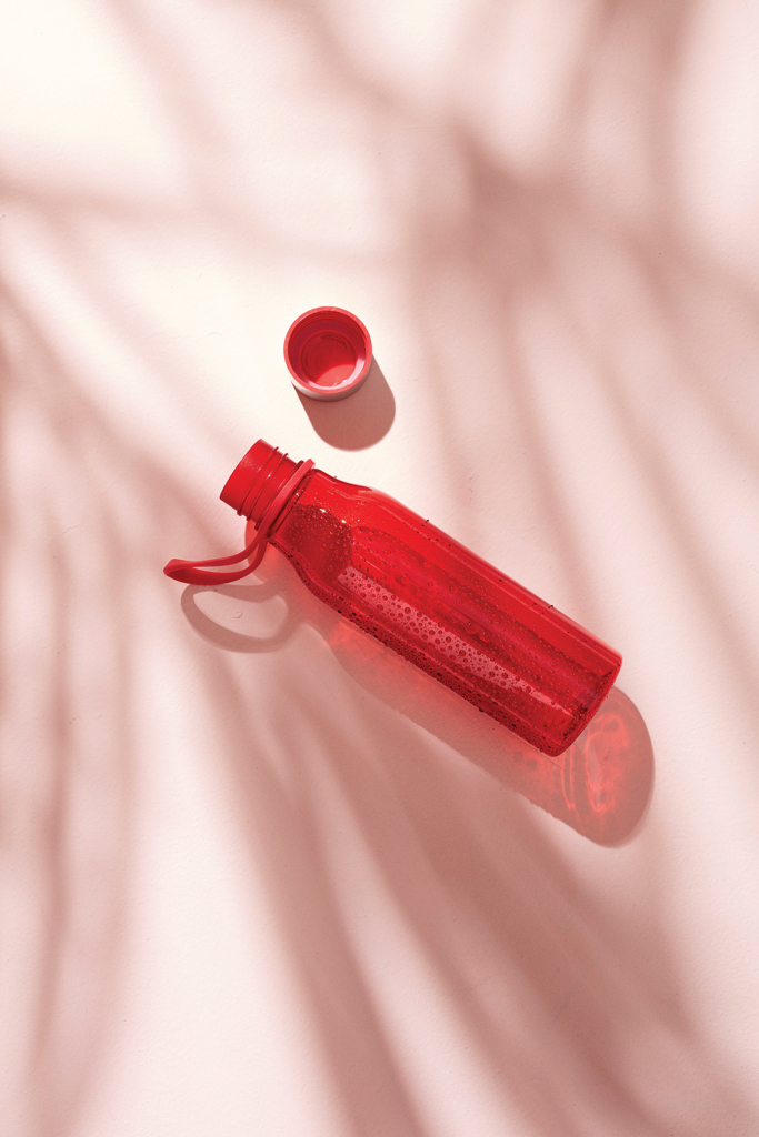 Water bottle made of BPA-free tritan plastic. The loop on the lid makes it easy to hang on the exercise machine and the ideal shape allows it to fit in most cup holders. The bottle is easy to clean. Suitable to add a print on.