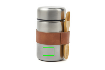 High quality food thermos in 18/8 steel. The accompanying wooden spoon can be stored in a strap affixed on the thermos. The large opening makes it easy to fill, clean and eat directly from the thermos.