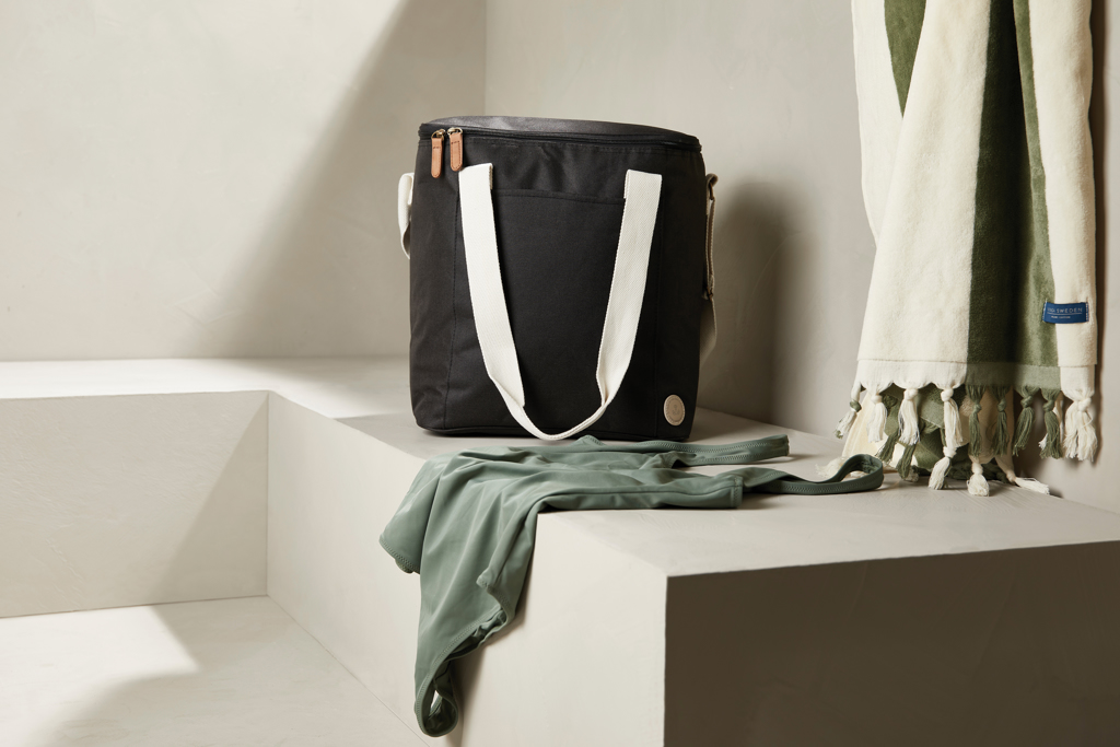 The weekend getaway will definetly get better with this trendy cooler bag, it is also practical and simple to clean. The cooler bag is in a melange fabric accompanied with PU details which makes it as fancy as a normal bag. Produced in 50% recycled polyester from recycled PET bottles. On the front of the bag is a pocket for belongings. You can either carry it in its handles or over your shoulder.