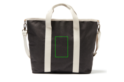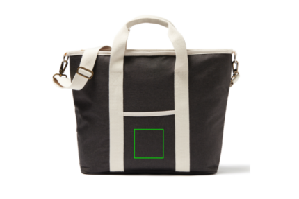 Cooler bag that is mottled tone by tone with details in imitation leather and cotton so that it is as beautiful as an ordinary bag and you can picnic in style. Made from 50% recycled material from PET bottles. There is also a small compartment on the outside of the cooler bag, providing space for other items as well. The thick PEVA padding ensures that the cold is retained for a long time. It is also easy to clean and dry after use. With an adjustable shoulder strap and double handle, you have different ways to carry the cooler bag.