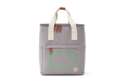 Cooler backpack that fits perfectly for both the smaller and larger get away. The cooler backpack has smaller pockets on both sides and one bigger pocket on the front. The main material is a recycled material made out of recycled PET bottles. It keeps cool well and is easy to clean with the larger opening.