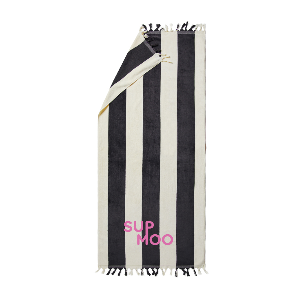 A luxurious cotton beach towel with tassels at the short ends, for days at the beach or pool. Our beach towels are made in India with 100% organically grown cotton, and have a thickness of 450 g/m2.