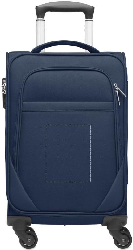 600D RPET Polyester soft side cabin trolley. Including exterior zipped laptop compartment. Zipped front pocket. Combi lock. Bottom compartment with ribbons.