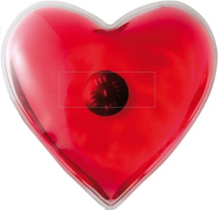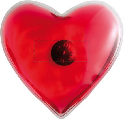 Instant hot and cold pad in heart shape. Activate it by pressing the metal plate inside. Can be used again by placing in hot water. No batteries required.