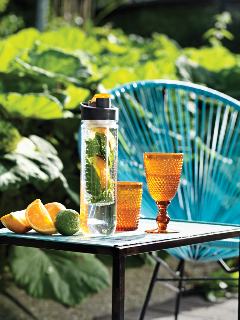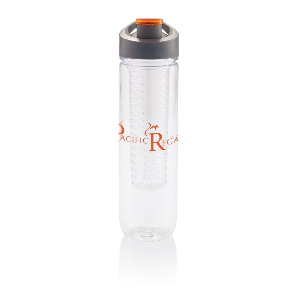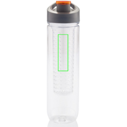800ml Tritan bottle with fruit infuser compartment. Infuse your water with a load of vitamins and flavour by adding fresh fruits into the infuser compartment. The infuser compartment can also be used to chill your water by adding ice cubes.