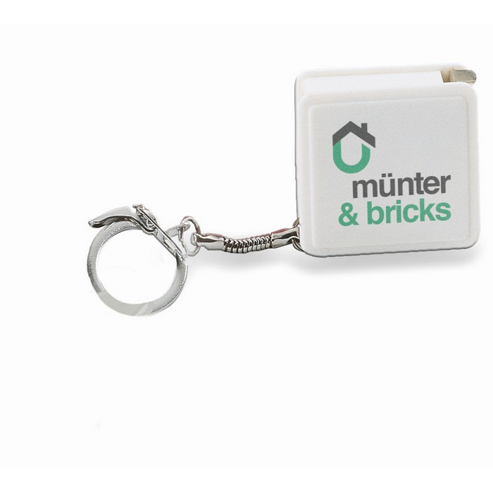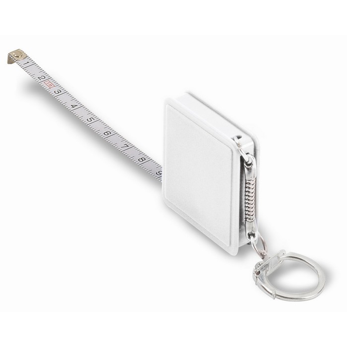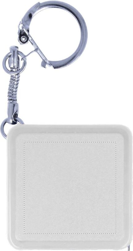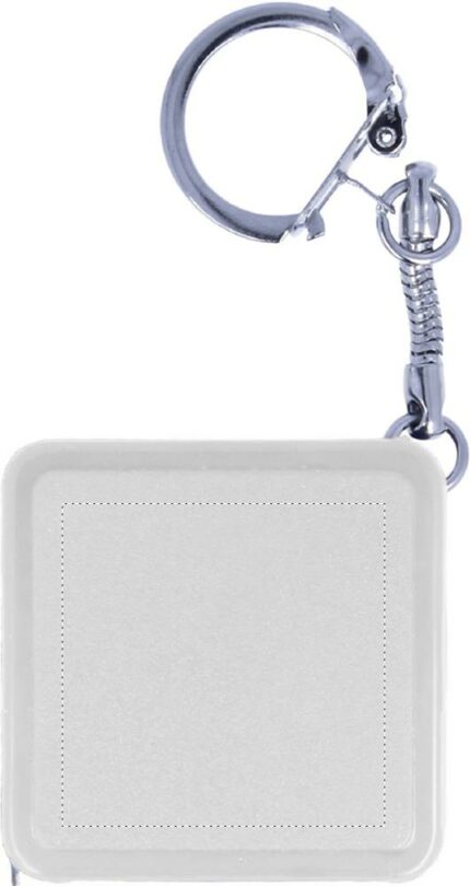 Flexible 1m steel ruler in square shape plastic with keyring.
