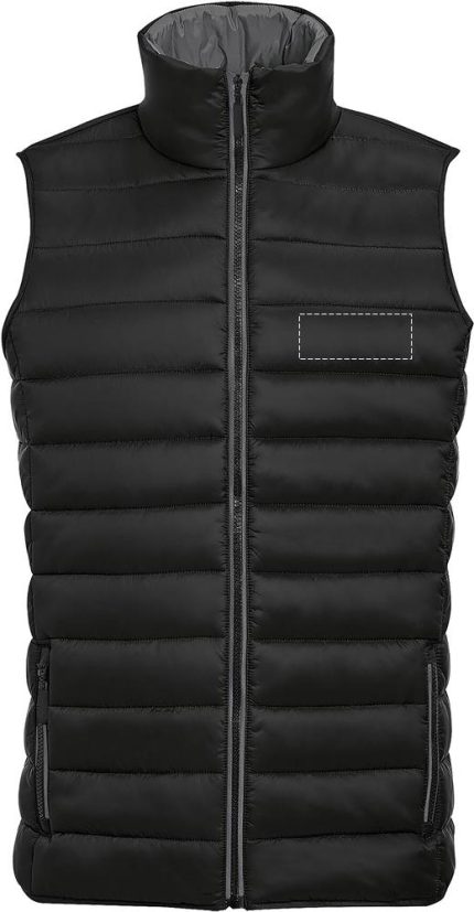 SOL’S WAVE Men’s Bodywarmer/vest in lightweight material. This is the sleeveless version of the popular Ride jacket but offers greater freedom of movement. Can also be used as an extra layer under a jacket. Wind and water repellent material, 2 pockets with stylish zippers and colour matched lining, high collar, stylish fit, Tone-on-tone reinforcement at the hem. Fabric details: 100% nylon, lining Only sold with print
