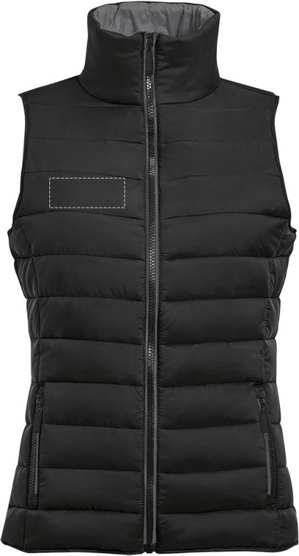 SOL’S WAVE Women’s Bodywarmer/vest in lightweight material. This is the sleeveless version of the popular Ride jacket but offers greater freedom of movement. Can also be used as an extra layer under a jacket. Wind and water repellent material, 2 pockets with stylish zippers and colour matched lining, high collar, stylish fit, Tone-on-tone reinforcement at the hem. Fabric details: 100% nylon, lini Only sold with print