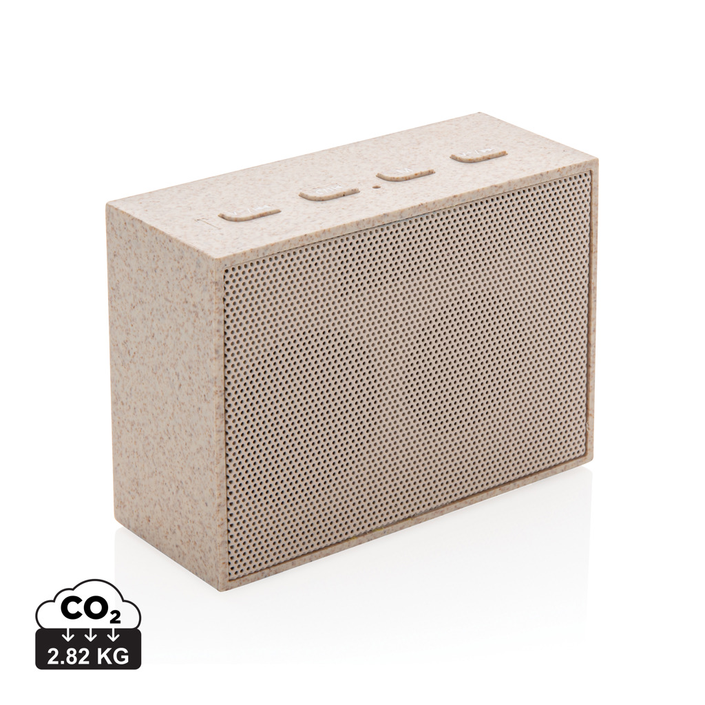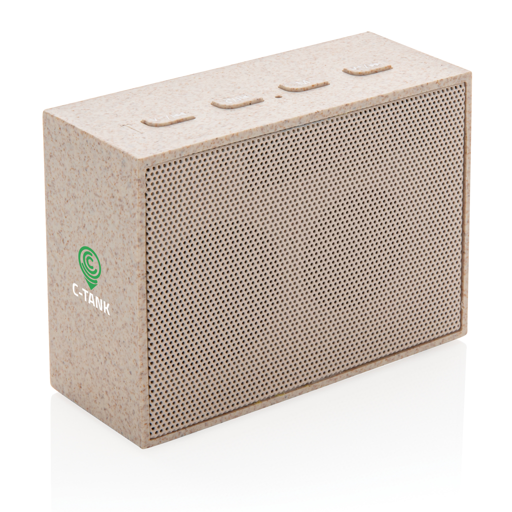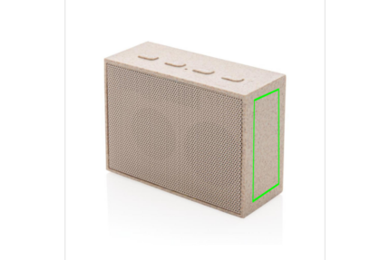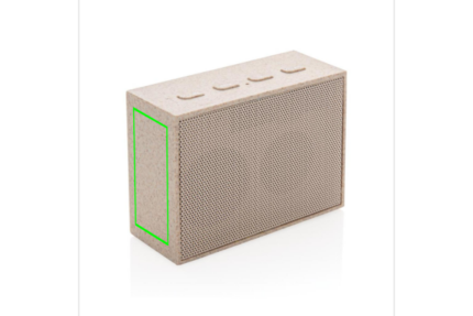 Small but powerful 3W wireless speaker made out of a natural wheat fiber (35%) mixed with ABS that can be taken anywhere you go to play your favorite music. With 500 mah battery that allows a playing time up to 4 hours on one single charge and operating distance of 10m using BT5.0. With mic and pick-up function.