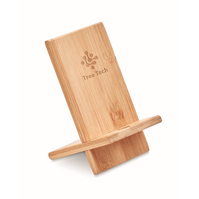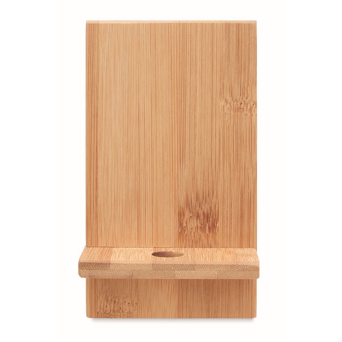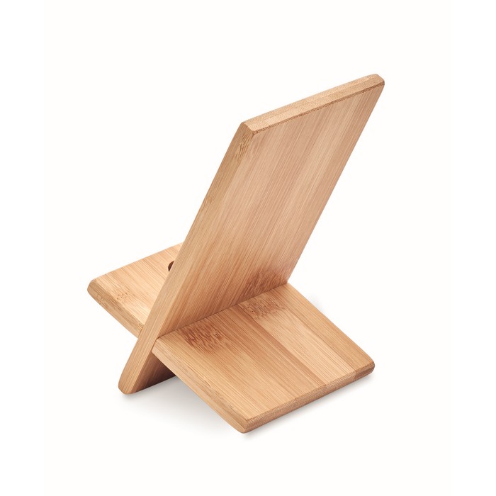 Bamboo phone stand holder. It includes 2 parts, you can assemble it vertically to hold your phone. Bamboo is a natural product, there may be slight variations in colour and size per item, which can affect the final decoration outcome.