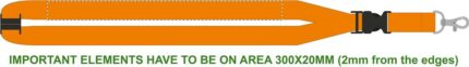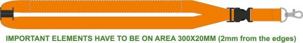 Lanyard with metal hook, detachable buckle and safety breakaway. 25mm wide. Sublimation print available on white item only.