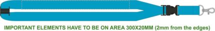 Lanyard with metal hook, detachable buckle and safety breakaway. 25mm wide. Sublimation print available on white item only.