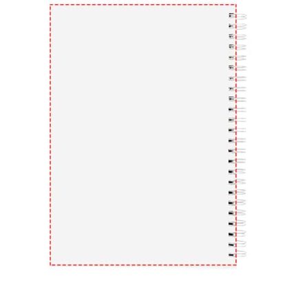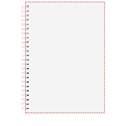 Includes 80 sheets (80g/m2) blank paper, and a black or white wire. Available in 3 sizes, A4, A5 and A6. Full colour decoration available on the cover and on each sheet, front- and back side.