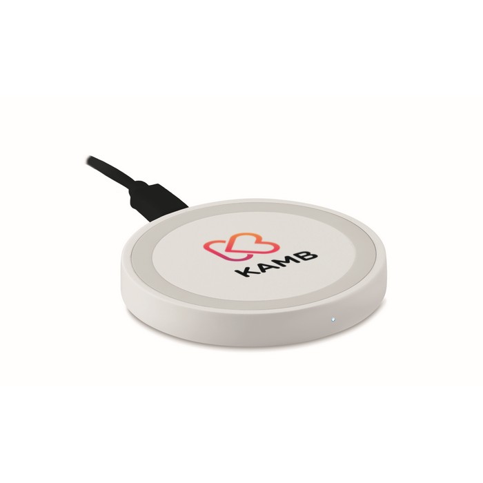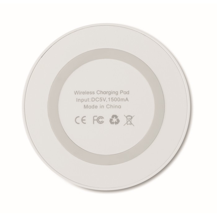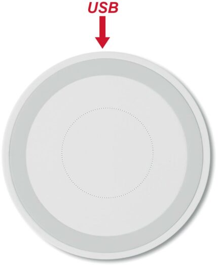 Wireless charger. Connect device to your computer, place smartphone on it to begin charging. Light when charging. Output: DC5V/1A (5W). Compatible with latest Androids, iPhone® 8, 8S and X and newer.