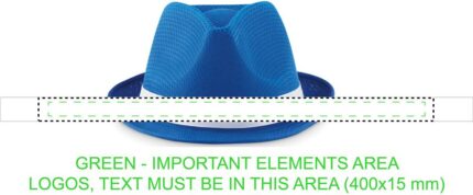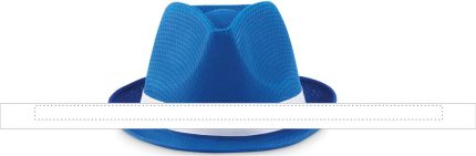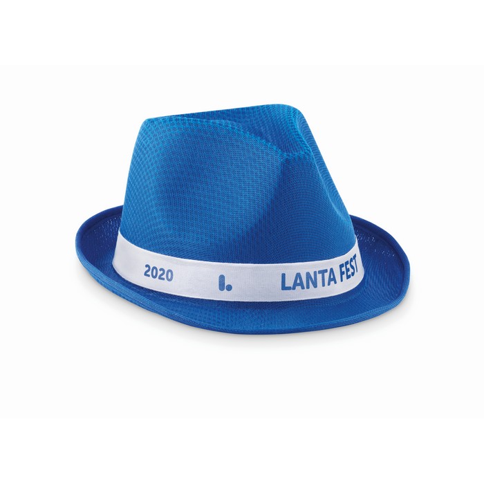 Coloured hat in polyester straw with white coloured band. For unprinted orders the band will be supplied unattached to the items