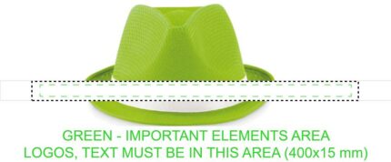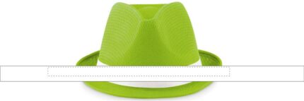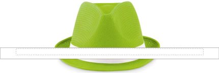 Coloured hat in polyester straw with white coloured band. For unprinted orders the band will be supplied unattached to the items