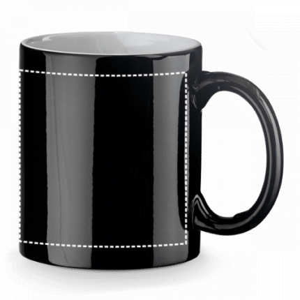 Thermosensitive glaze ceramic mug with capacity up to 350 mL. This mug is suitable for sublimation all around and the printing will appear after the mug has a hot drink inside. Supplied in a box. ø83 x 97 mm | Box: 120 x 88 x 102 mm