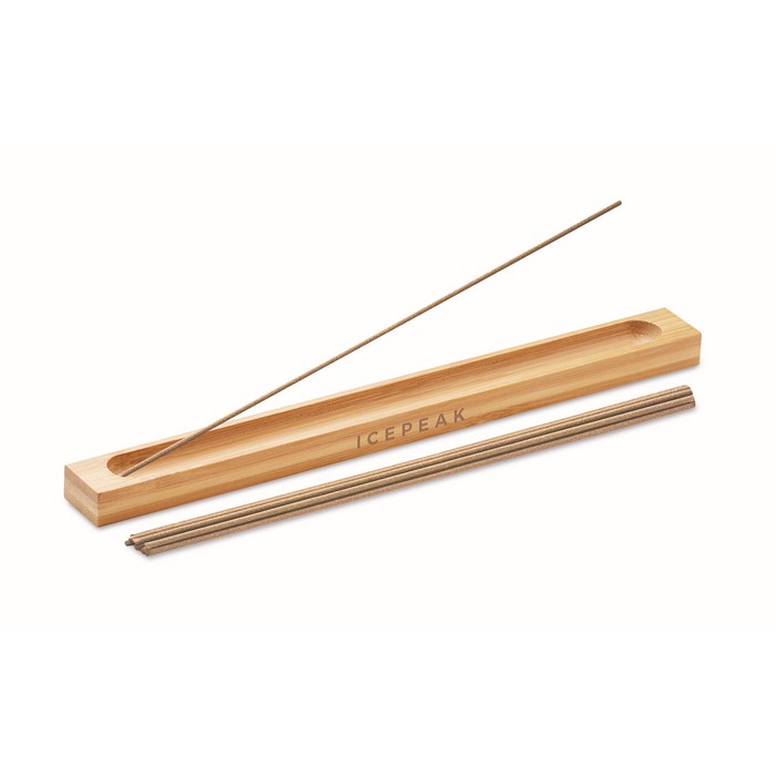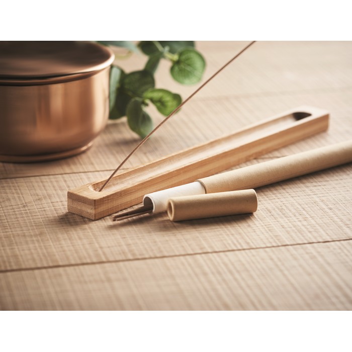 Incense set. Includes 10 sandal wood scented incense sticks and a bamboo holder.
