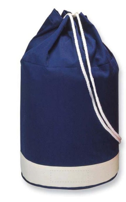 Bicolour cotton navy duffle bag with white stripe. 200gr/m² cotton twill.