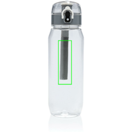 This RCS RPET water bottle is leakproof and features a lockable and one hand operation lid. It also features a handle for easy carrying. The body of the bottle is made from 100% RCS certified RPET. RCS certification ensures a completely certified supply chain of the recycled materials. Hand wash only. This product is for cold drinks only. Total recycled content: 73% based on total item weight. BPA free. Capacity 800ml. Including FSC®-certified kraft gift packaging.