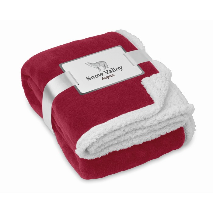 200 gr/m² coral fleece blanket with reversible 220 gr/m² polyester sherpa lining. Wrapped in ribbon and printable card.