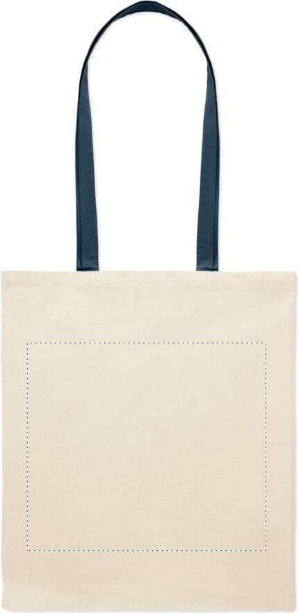 Cotton shopping bag with coloured long handles. 140 gr/m².