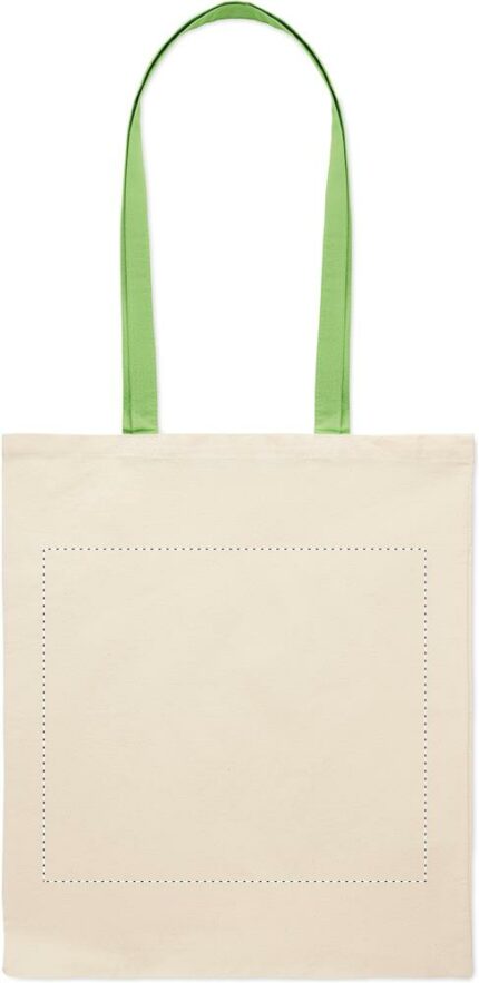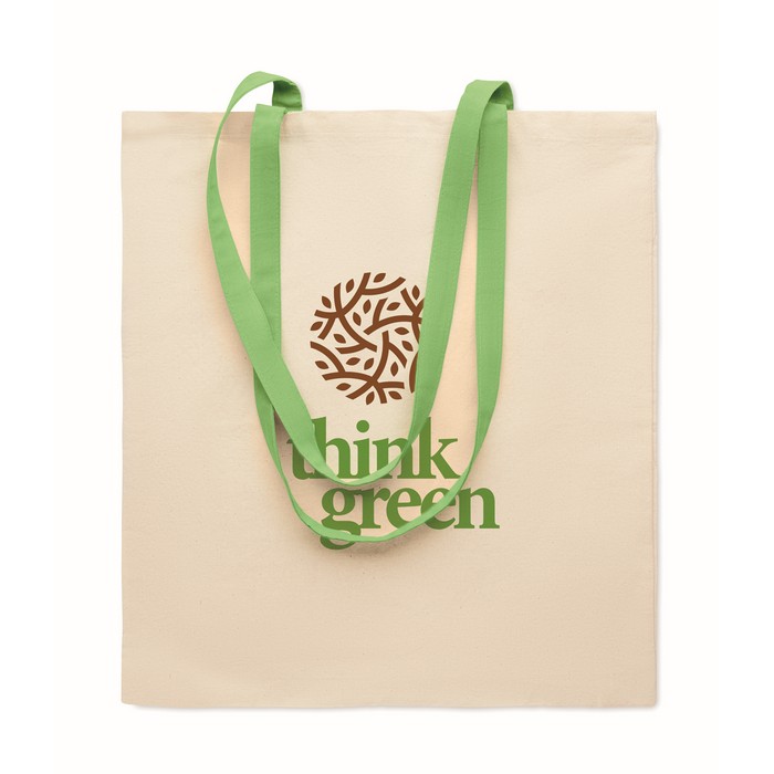 Cotton shopping bag with coloured long handles. 140 gr/m².